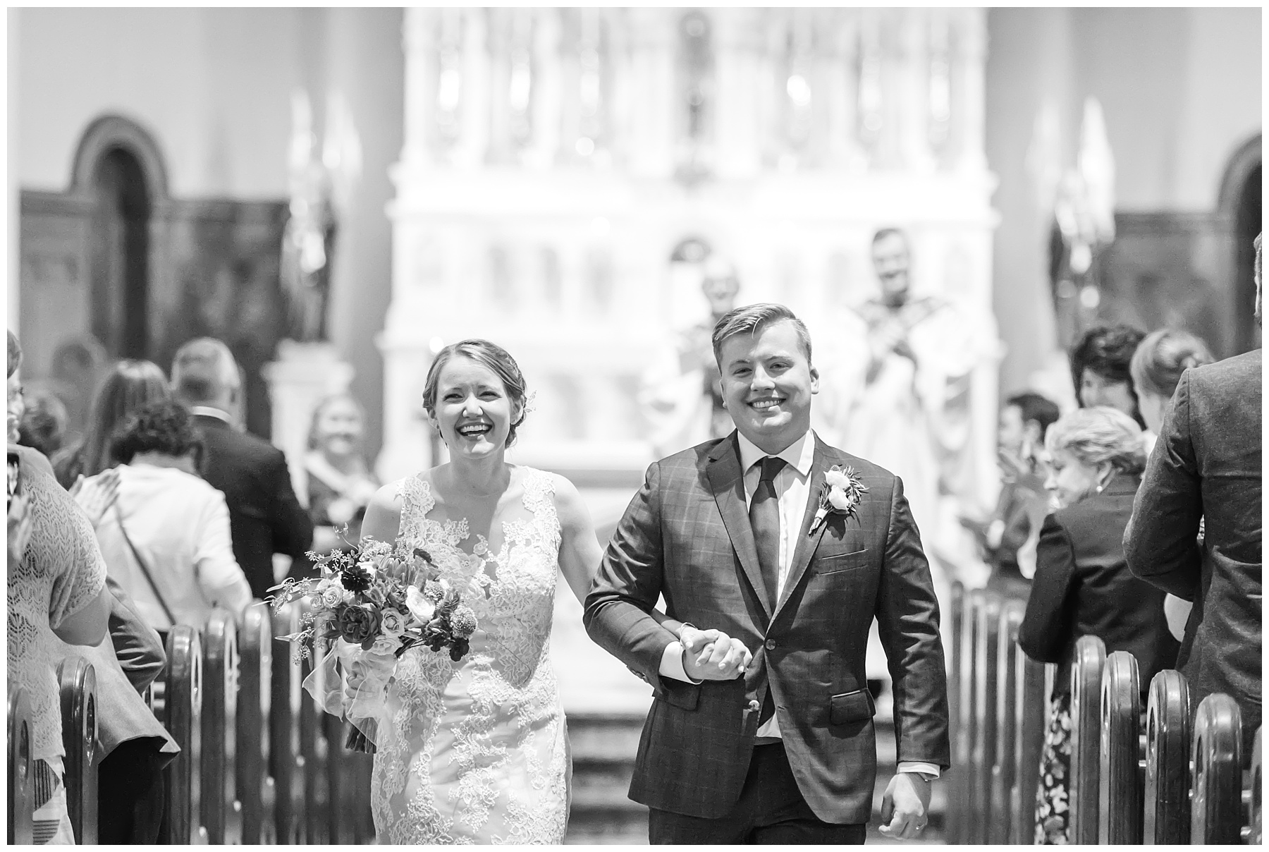 Andrew and Kaitlin first met on campus at Mount St. Mary’s University through a completely random, perfectly-timed moment. As Kaitlyn entered her apartment, Andrew and his friend happened to be walking through the halls. Andrew’s friend glanced in, recognized Kaitlin’s roommate as a childhood friend and walked right in to catch up! Kaitlin and Andrew exchanged awkward introductions, but soon found themselves wrapped in conversation for the rest of the evening. This chance encounter turned into homework dates, long walks through campus, and the start of a lifelong romance. During this time, Andrew began the process of becoming Catholic and Kaitlin was his confirmation sponsor. Between meeting on campus, joining the Catholic church, and now getting married in IC Chapel, Mount St. Mary’s is such a special place for the both of them.