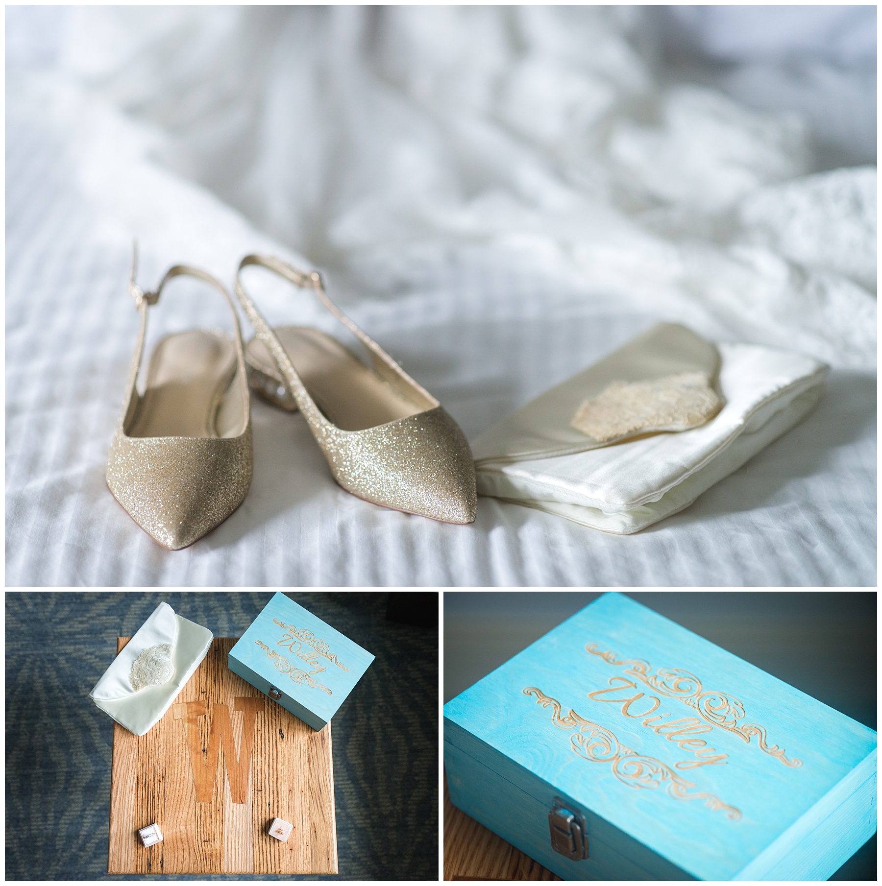 Kaitlin’s dad made this table for her and Andrew as a wedding guestbook and Andrew personalized this jewelry box for her!